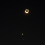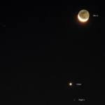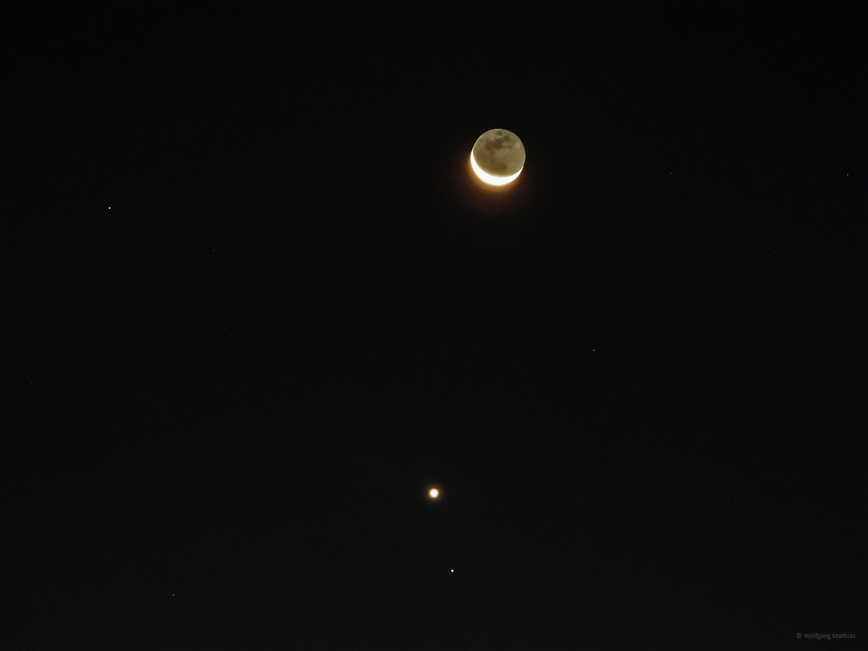 In einigen Regionen verdeckt der Mond die Venus kurz. Das Trio ist weltweit sichtbar, jedoch in leicht abweichender Anordnung.